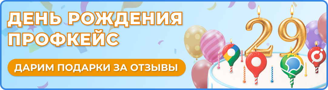 15 апреля наша компания празднует 29-ый день рождения! В честь этого события мы решили разыграть подарки среди наших клиентов. Оставьте отзыв о работе с нами на любой из площадок и примите участие в розыгрыше призов. 15 апреля мы подведем итоги и случайным образом определим победителей.